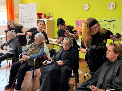 Ayuda en Acción, a través de su proyecto Impulsa, ha unido reconocimiento, aprendizaje y cuidado en una actividad intergeneracional con motivo del Dia Internacional de la Mujer. Las alumnas de Formación Profesional Básica de Peluquería y Estética del IES San José (Badajoz) que participan en el proyecto compartieron una jornada de aprendizaje con las usuarias de la residencia para mayores Puente Real 2.