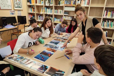Por su parte, el 25 de octubre tuvo lugar el primer taller del Mural del Clima en la biblioteca del CIP Virxe da Cela de Monfero (A Coruña) con el alumnado de 1º y 2º de la ESO (en torno a 30 alumnos/as). El Mural del Clima es una metodología educativa basada en la inteligencia colectiva y en un juego dinámico de cartas que, las y los participantes, deberán ordenar según causas-consecuencias del cambio climático.
