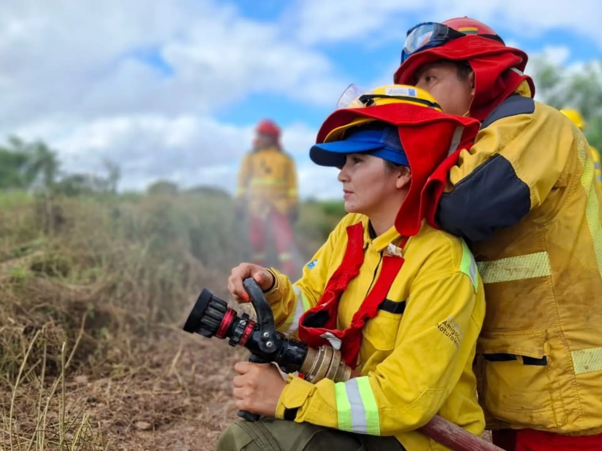 Mujer joven en formación contra incendios