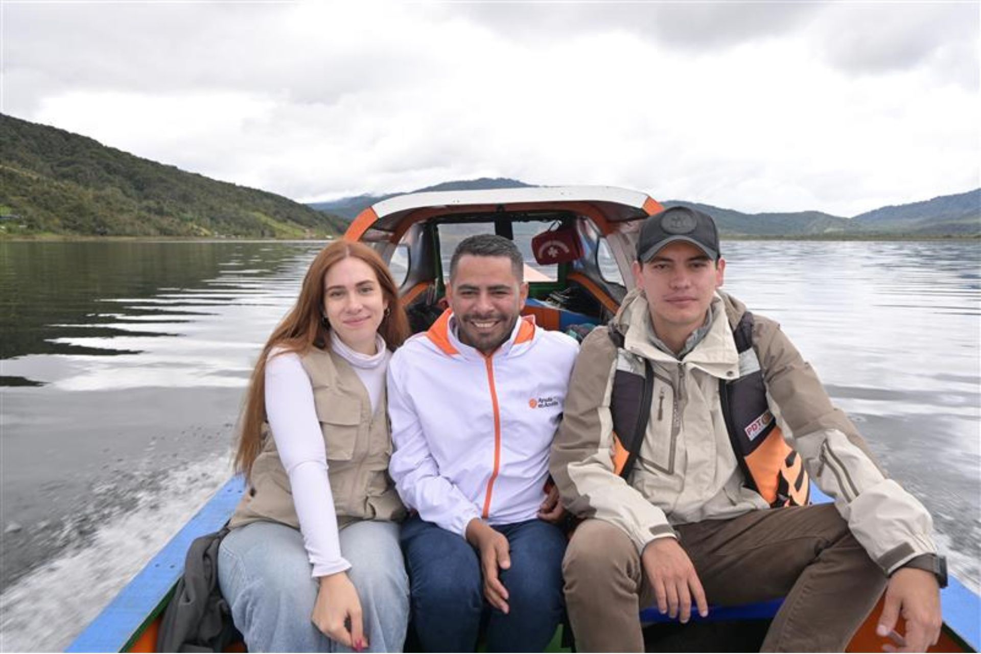 Dos mujeres consultan un mapa en el Punto de Atención al Migrante de Norte de Santander en Colombia