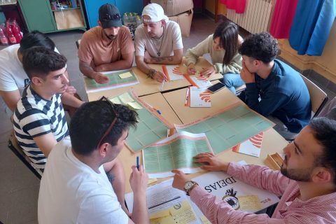 Grupo de mujeres cosiendo en proyecto de Portugal