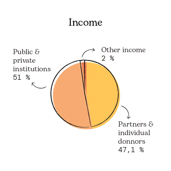 We allocated over 34 million euros to the development of international cooperation and social action programmes —representing 79.2% of total expenditures in 2024—, while the remaining 20.8% was dedicated to fundraising and resource management.