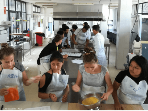 Chicos y chicas del barrio de Los Cármenes (en Madrid) y de Son Gotleu (en Palma) participan en estos talleres durante los meses de junio y julio: trabajan en equipo y aprenden sobre alimentación saludable, se divierten cocinando y conocen una profesión a la que, por qué no, dedicarse en un futuro no tan lejano. Jóvenes de barrios estigmatizados y con cierta problemática social están adquiriendo herramientas que sin duda les permitirán mejorar su autoestima y autonomía de cara a una mejor inserción sociolaboral.
