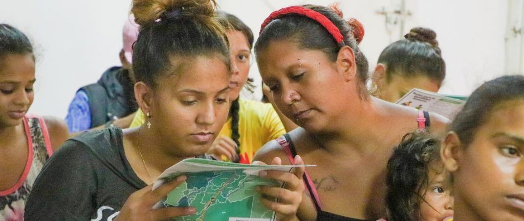 Ayuda en Acción y la Agencia Extremeña de Cooperación Internacional al Desarrollo, AEXCID, trabajan juntos para garantizar la seguridad de las personas migrantes. Todos los viajeros que pasan por el Punto de Atención Norte de Santander, casi al llegar a la frontera con Venezuela, reciben mapas de movilidad humana con información sobre la ruta y cartillas de agua, higiene y saneamiento dirigidas a niñas y niños.