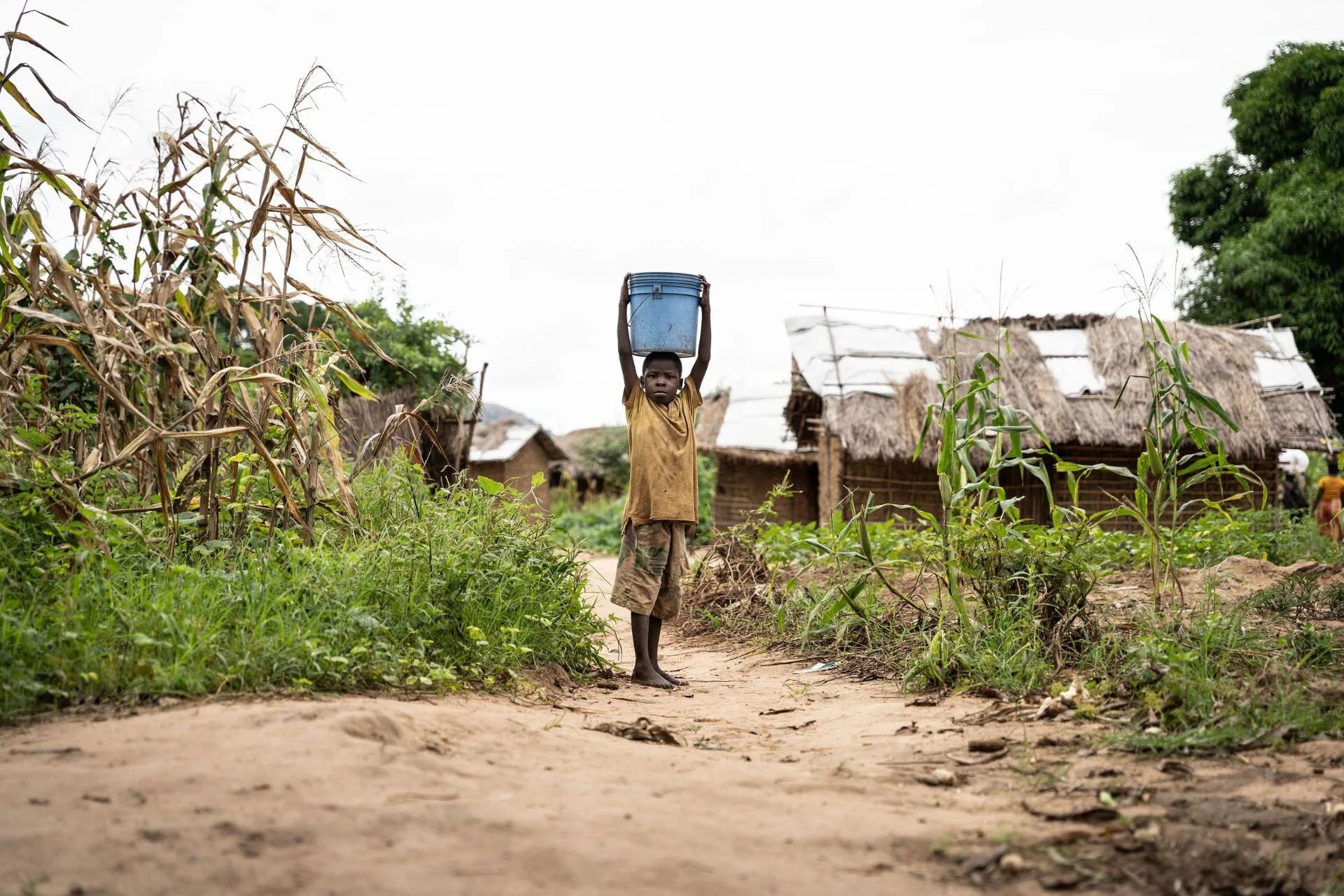 Niño buscando agua en Mozambique